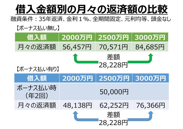 今回はそこに注目して、2000万円、2500万円、3000万円借りたときのそれぞれの月々の返済額を比較していきたいと思います。