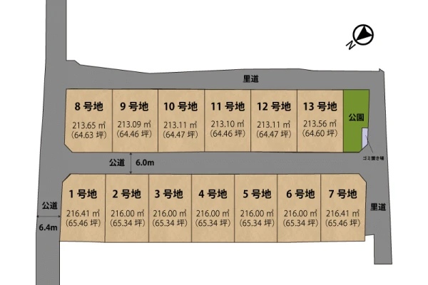 【全13区画】6m道路で駐車も安心! 広々64坪以上の敷地で、子育てを楽しむ街♪