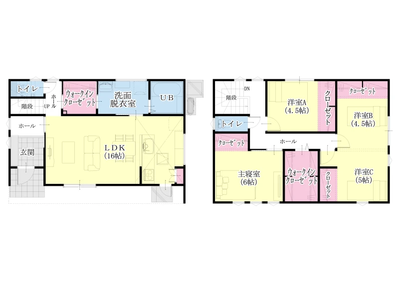 1・2階にウォークインクローゼットを完備。家族の荷物もすっきり片付く、収納充実の住まいです。
