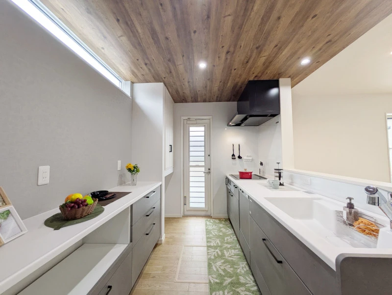 カップボードやパントリー付きのキッチンに加え、家事動線に配慮した間取りで日々の暮らしが快適です。