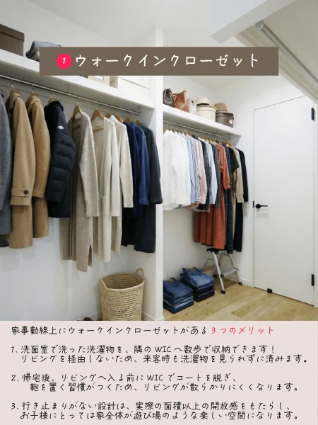 ウォークインクローゼットを軸に、水回りやLDKへつながる快適動線を実現。