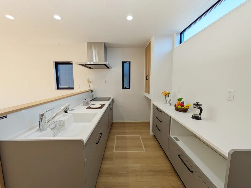 | 設備 | 上水道、下水道、電気、室内洗濯機置場、IHクッキングヒーター、オール電化、複層ガラス、照明器具付き、モニタ付インターホン、駐車3台以上可、システムキッチン、食器洗浄乾燥機、浄水器、省エネ給湯器、パントリー、浴室1坪以上、バス・トイレ別、追焚機能、浴室乾燥機、トイレ2箇所、温水洗浄便座、洗面台、洗面所、シャンプードレッサー、ウォークインクローゼット、シューズインクローゼット、床下収納、フローリング、エコキュート、全室LED照明、全室Low-Eペアガラス、全室カーテン付き、1616システムバス、洗面台 | ||