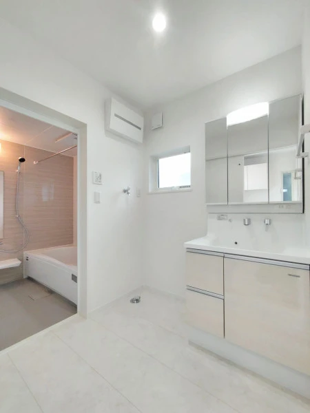 | 設備 | 上水道、下水道、電気、室内洗濯機置場、IHクッキングヒーター、オール電化、南面バルコニー、複層ガラス、照明器具付き、モニタ付インターホン、駐車2台可、システムキッチン、食器洗浄乾燥機、浄水器、省エネ給湯器、バス・トイレ別、浴室1坪以上、追焚機能、浴室乾燥機、浴室に窓、トイレ2箇所、温水洗浄便座、洗面台、洗面所、シャンプードレッサー、床下収納、フローリング、エコキュート、全室LED照明、全室Low-Eペアガラス、全室カーテン付き、1616システムバス、三面鏡洗面台 | ||