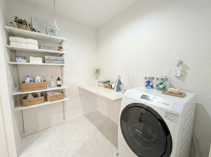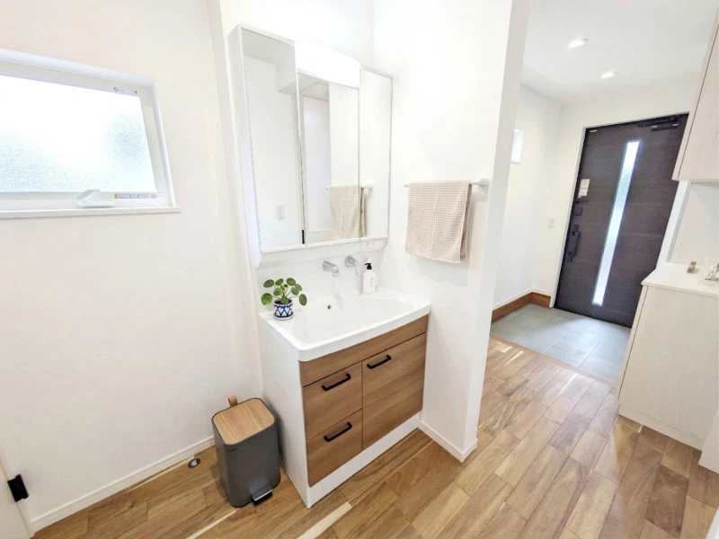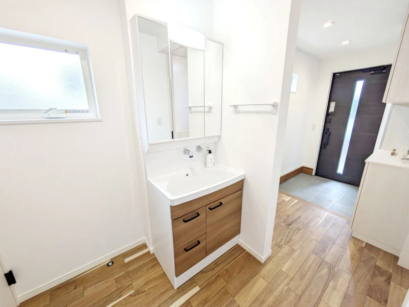 | 設備 | 上水道、下水道、電気、室内洗濯機置場、IHクッキングヒーター、オール電化、複層ガラス、照明器具付き、モニタ付インターホン、駐車2台可、システムキッチン、食器洗浄乾燥機、浄水器、省エネ給湯器、パントリー、バス・トイレ別、浴室1坪以上、追焚機能、浴室乾燥機、トイレ2箇所、温水洗浄便座、洗面台、洗面所、シャンプードレッサー、ウォークインクローゼット、シューズインクローゼット、床下収納、フローリング、エコキュート、全室LED照明、全室Low-Eペアガラス、全室カーテン付き、1616システムバス、三面鏡洗面台 | ||