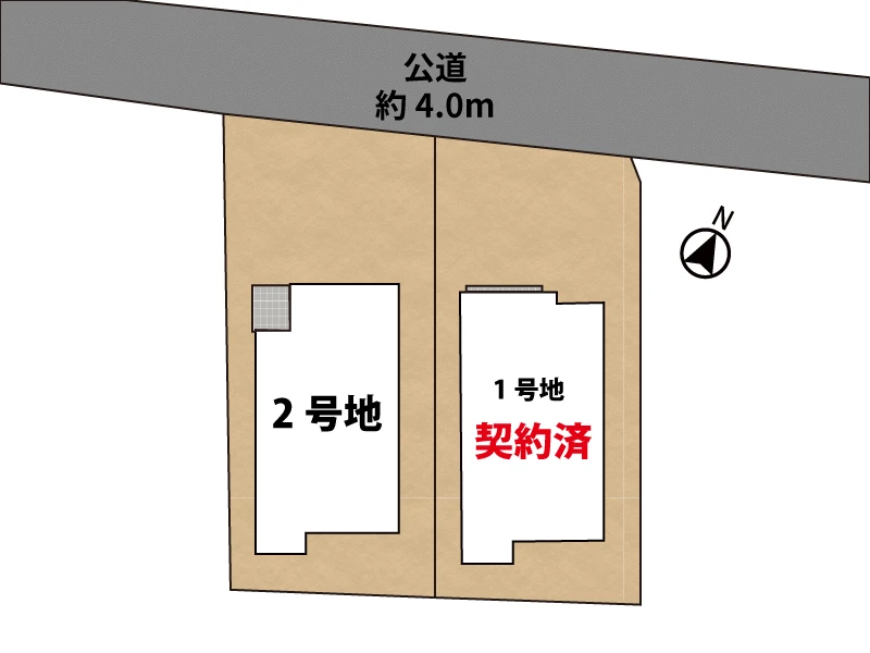 一方 北 間口8m 私道 幅4m |