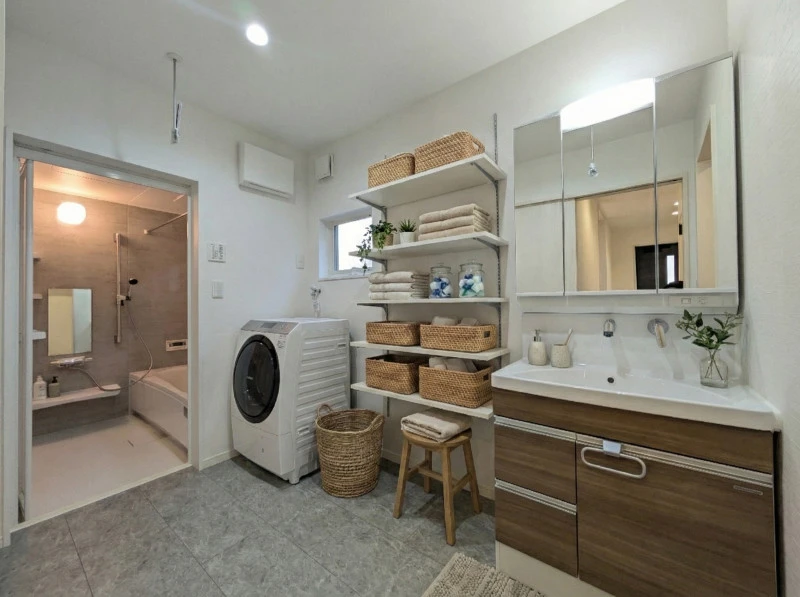 家事ラク動線や3帖の広々洗面脱衣室、2か所のW.I.C、全居室収納など、快適性に配慮した間取りもポイント。