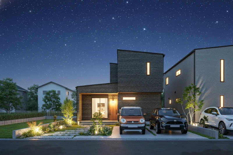 新玉名駅や家電量販店、ホームセンター、公園が徒歩圏内に揃う利便性の高い立地。半平屋風のお洒落な外観が魅力の新築建売住宅です。1階洋室と豊富な1階収納、シューズクロークやパントリーを備え、暮らしやすさに配慮。省令準耐火構造・ZEH仕様の高性能住宅に制震ダンパー付きで安心。駐車場は3台分確保されています。
