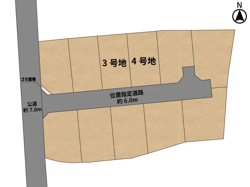 一方 南 間口9.9m 私道 幅6m 位置指定有 |