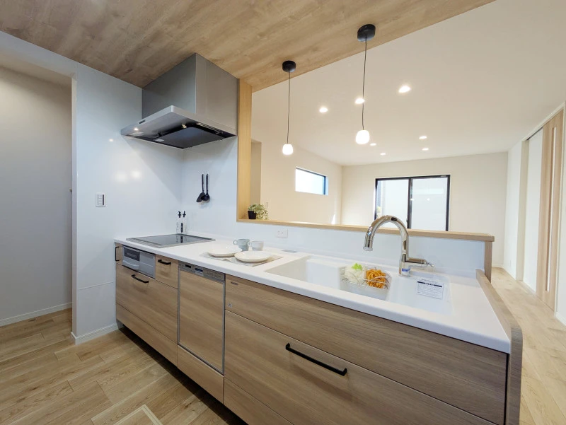 | 設備 | 上水道、下水道、電気、室内洗濯機置場、IHクッキングヒーター、オール電化、複層ガラス、照明器具付き、モニタ付インターホン、駐車2台可、システムキッチン、食器洗浄乾燥機、浄水器、省エネ給湯器、パントリー、バス・トイレ別、浴室1坪以上、追焚機能、浴室乾燥機、トイレ2箇所、温水洗浄便座、洗面台、洗面所、シャンプードレッサー、ウォークインクローゼット、床下収納、フローリング、宅配ボックス、エコキュート、LED照明、Low-Eペアガラス、カーテン付き、1616システムバス | ||