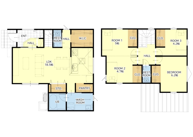 WIC+パントリー2か所で収納充実! 18.5帖のLDKとWIC付きでゆとりのある空間。