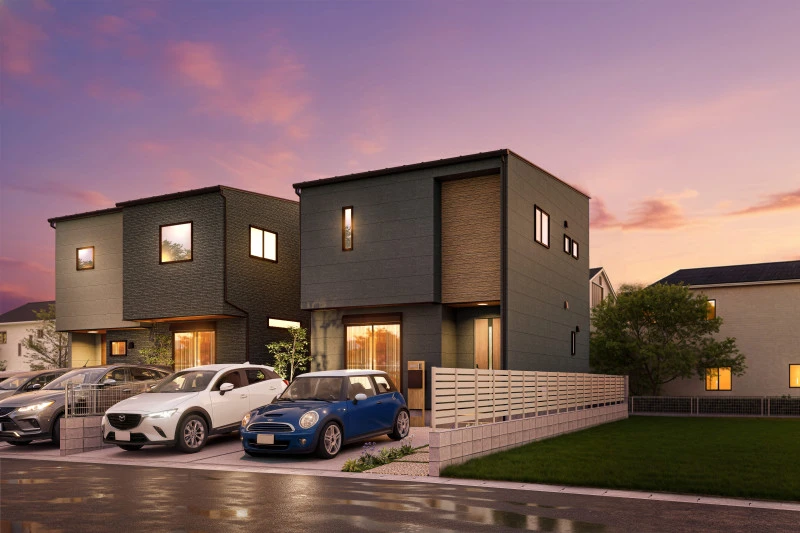 | 特徴 | 24時間換気システム、平坦地、閑静な住宅街、地盤調査済、2面採光、LDK15帖以上、全居室収納、全居室洋室、前道6m以上、南側道路面、南向き、外構工事費込、省令準耐火構造、ZEH、制震ダンパー | ||