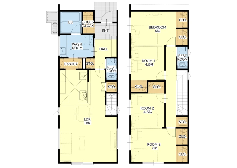 18帖のLDKを中心に、ランドリーとパントリーをつなぐスムーズな家事動線。