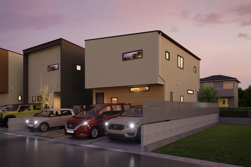 | 特徴 | 24時間換気システム、平坦地、閑静な住宅街、地盤調査済、2面採光、LDK15帖以上、全居室収納、全居室洋室、外構工事費込、省令準耐火構造、ZEH仕様、制震ダンパー、IoT | ||