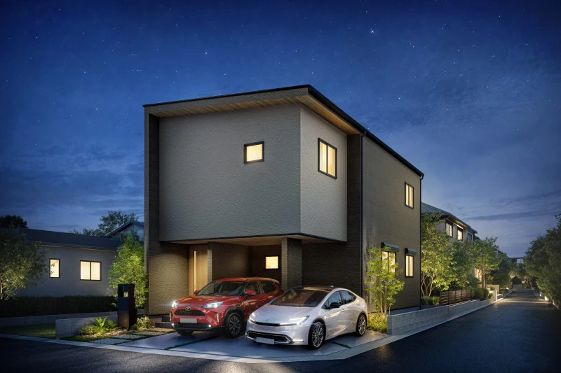 | 設備 | 上水道、下水道、電気、室内洗濯機置場、IHクッキングヒーター、オール電化、複層ガラス、照明器具付き、モニタ付インターホン、駐車2台可、システムキッチン、食器洗浄乾燥機、浄水器、省エネ給湯器、パントリー、バス・トイレ別、浴室1坪以上、追焚機能、浴室乾燥機、トイレ2箇所、温水洗浄便座、洗面台、洗面所、シャンプードレッサー、ウォークインクローゼット、床下収納、フローリング、宅配ボックス、太陽光発電システム、電動シャッター、エアコン、防犯カメラ、IoT機器(ホームデバイス)、電動シャッター(1ヵ所)、エアコン(2台)、LED照明、エコキュート、窓サッシ(LIXIL サーモスL)、外部水栓、制震ダンパー、ZEH、省令準耐火構造、人感センサー付きライト | ||