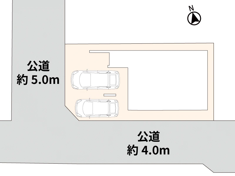 角地 西 間口7.7m 公道 幅5m 位置指定無 南 間口12.6m 公道 幅4m |