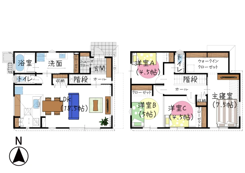 | 特徴 | 平坦地、閑静な住宅街、地盤調査済、2面採光、LDK15帖以上、全居室洋室、全居室収納 | ||