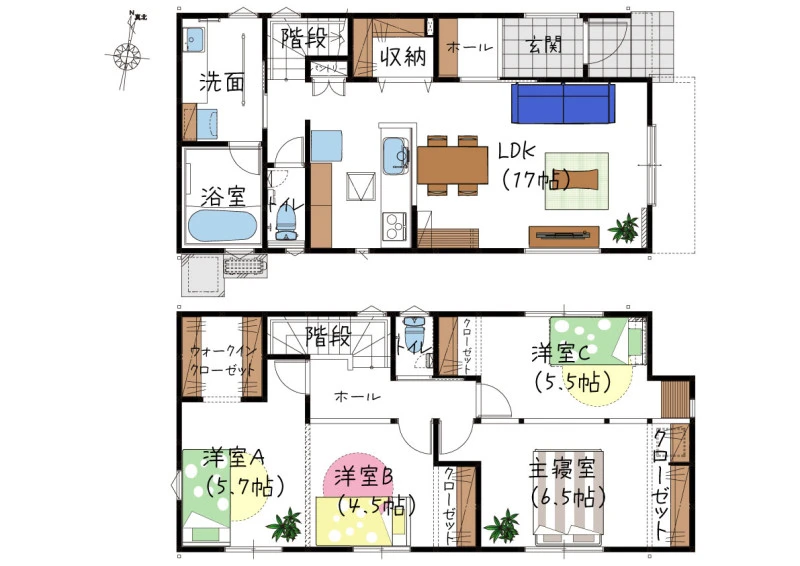 | 特徴 | 平坦地、閑静な住宅街、地盤調査済、2面採光、LDK15帖以上、全居室洋室、全居室収納 | ||