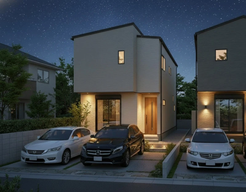 | 設備 | 上水道、下水道、電気、室内洗濯機置場、IHクッキングヒーター、宅配ボックス、オール電化、太陽光発電システム、電動シャッター、複層ガラス、エアコン、照明器具付き、モニタ付インターホン、システムキッチン、食器洗浄乾燥機、浄水器、省エネ給湯器、パントリー、バス・トイレ別、浴室1坪以上、追焚機能、浴室乾燥機、浴室に窓、温水洗浄便座、洗面台、洗面所、シャンプードレッサー、収納スペース、ウォークインクローゼット、床下収納、フローリング、防犯カメラ、トイレ2箇所、駐車2台可、IoT機器(ホームデバイス)、電動シャッター(1ヵ所)、エアコン(2台)、LED照明、エコキュート、窓サッシ(LIXIL サーモスL)、外部水栓、制震ダンパー、ZEH、省令準耐火構造、人感センサー付きライト | ||