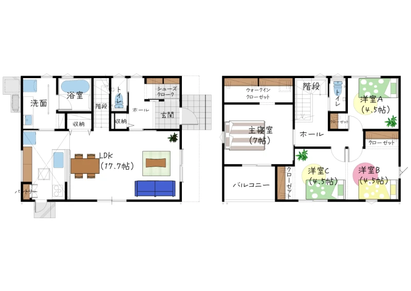 | 特徴 | 平坦地、閑静な住宅街、地盤調査済、2面採光、LDK15帖以上、全居室洋室、全居室収納 | ||