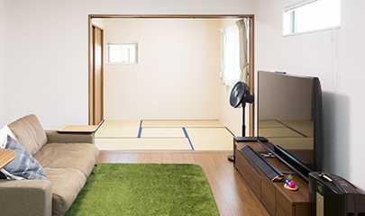 明るく開放的なリビングからつながる和室は、急な来客のおもてなしスペースとしても活躍します。間取りには、ご夫婦念願の書斎も設け、心地よい趣味の時間をお過ごしいただけます。