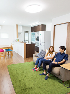 時間があるときのご夫婦の居場所は、お二人とも居心地の良いLDK。暮らしやすさとこだわりを詰め込んだ大満足の家。