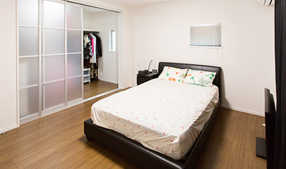 寝室に配置された、ウォークインクローゼットは、フルオープンで楽ちん収納がかないます。4台のスペースが確保された駐車場では、ご夫婦の車だけでなく、来客時にも活用いただけます。