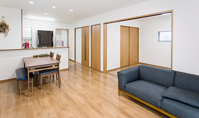 また、リビング横には、広い洋室を設け、収納スペースも大きくたっぷりと収納できます。